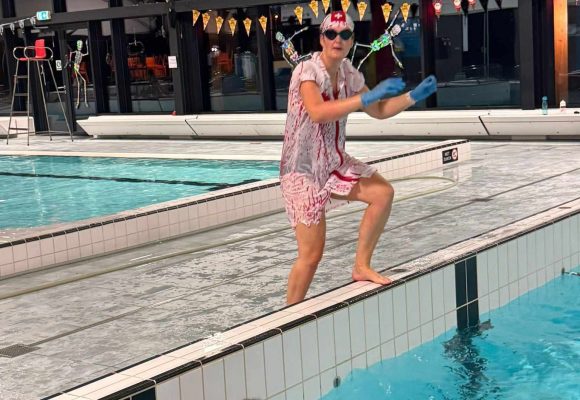 Speciaal voor Halloween geven we de training een extra spannende twist. Het zwembad wordt versierd in thema en de muziek versterkt de mysterieuze sfeer. De oefeningen worden aangepast om er een verrassend en energiek geheel van te maken. Daarnaast vragen we iedereen om verkleed te komen. Dat maakt de beleving nog leuker en zorgt voor een geweldige groepssfeer.